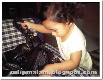Letak je handbag, tu lah kerja dia. Duk selongkar ape yg ada kt dalam tuh. Mmg nak cari handphone lah. Duit tarak hujung2 bulan ni. Hehehe